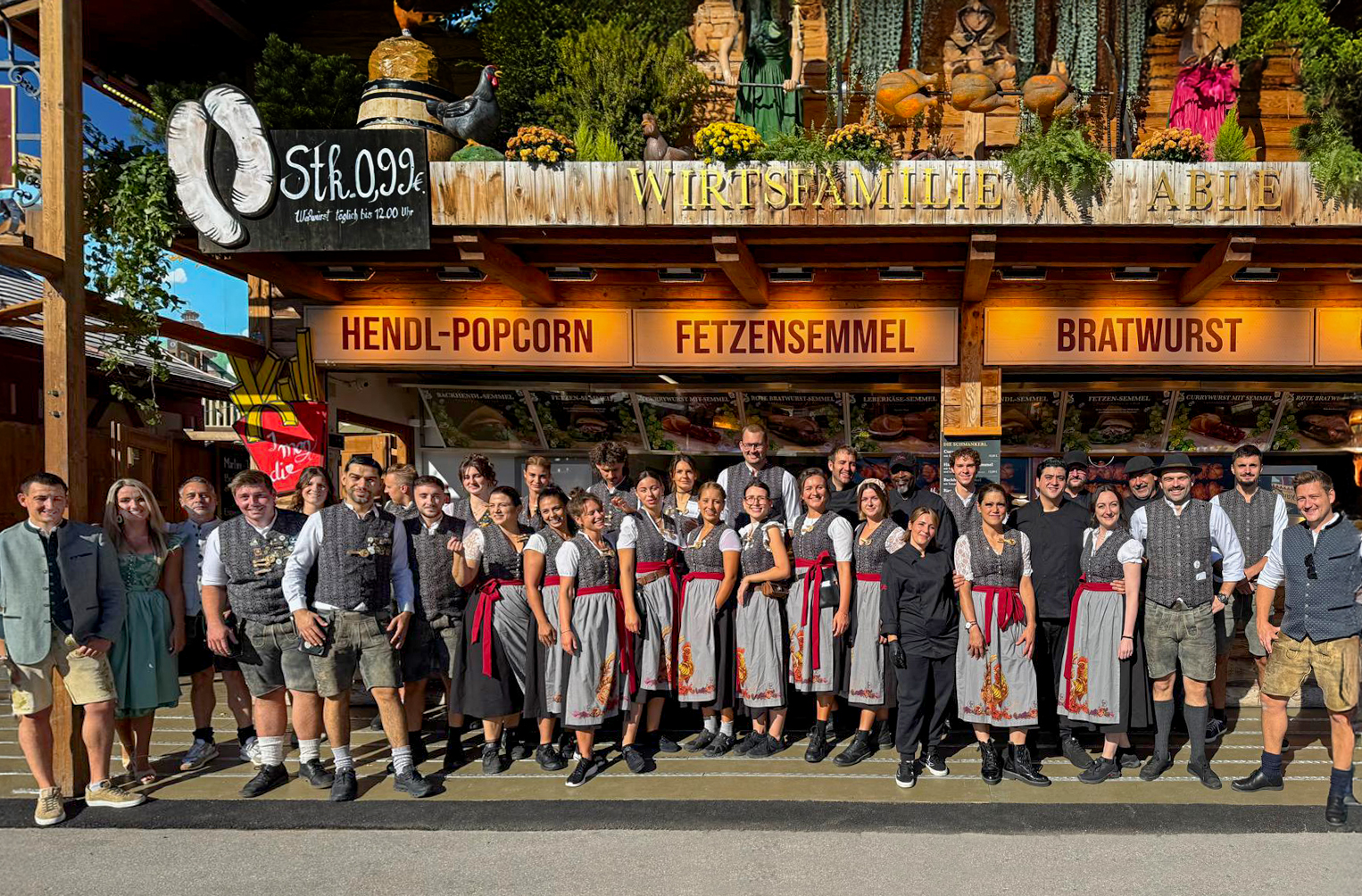 Auch in diesem Jahr sind wir wieder dabei und laden sie herzlich ein, uns auf der Wiesn im Goldenen Hahn zu besuchen. Unser „kleines“ Wiesnzelt ist genau das richtige für Sie. Drinnen erwartet sie traditionelle Gemütlichkeit, während Sie draußen im sonnigen Wirtsgarten eine luftige Atmosphäre genießen können. Der Goldene Hahn ist nicht einfach nur irgendein Zelt – hier steckt Persönlichkeit drin. Mit viel Holz, Herz, dem unverkennbarem Hahn und Liebe zu Detail gestaltet, bieten wir 300 Sitzplätzen im Innenbereich und 60 Plätzen im Freien. Perfekt für gesellige Runden, fröhliches Feiern, herzliches Lachen und authentisches München-Erlebnis auf dem größten Volksfest der Welt. Wir, die Familie Able, bestehend aus Claudia und Josef und unseren Söhnen Daniel und Sebastian sind Münchner und Gastgeber aus Leidenschaft und heißen Sie herzlichst willkommen in unserem Festzelt auf dem Oktoberfest.